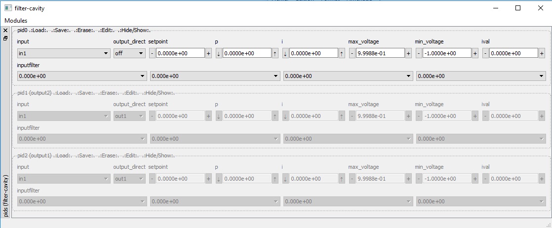 The image below shows a typical module widget, here for the PID modules.
